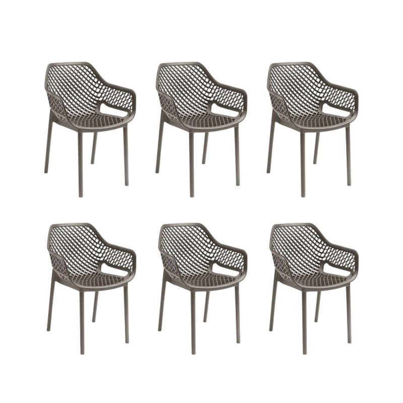 Gloupie Set 6 Poltrone Aria in Polipropilene Taupe, Impilabile,58x60x82 cm, 3,8 kg, Schienale Ergonomico,Made in Italy