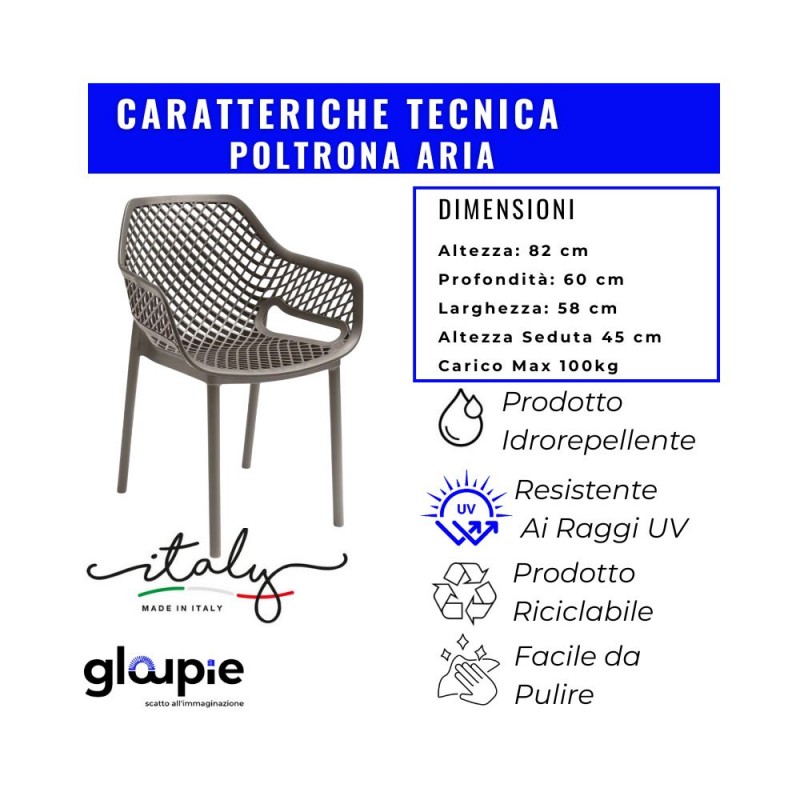 - Gloupie Set 6 Poltrone Aria in Polipropilene Taupe, Impilabile,58x60x82 cm, 3,8 kg, Schienale Ergonomico,Made in Italy