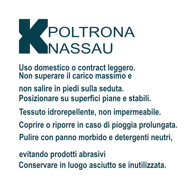 La versatilità è uno dei punti di forza della poltrona Nassau. Posizionala in giardino, terrazzo, portico o a bordo piscina e crea la tua oasi di relax personalizzata, da sola o in abbinamento a un tavolo per un set outdoor completo e funzionale. Arreda con stile il tuo spazio esterno e goditi appieno il comfort offerto da questa elegante poltrona. Grazie al suo design moderno e raffinato, Nassau si adatta perfettamente a qualsiasi ambiente, valorizzandolo con un tocco di classe e contemporaneità.