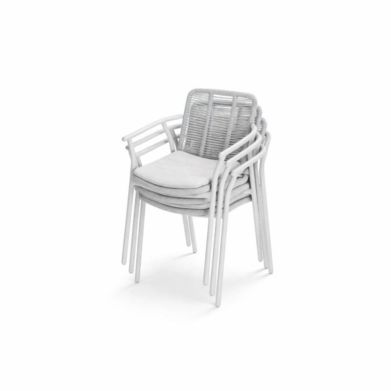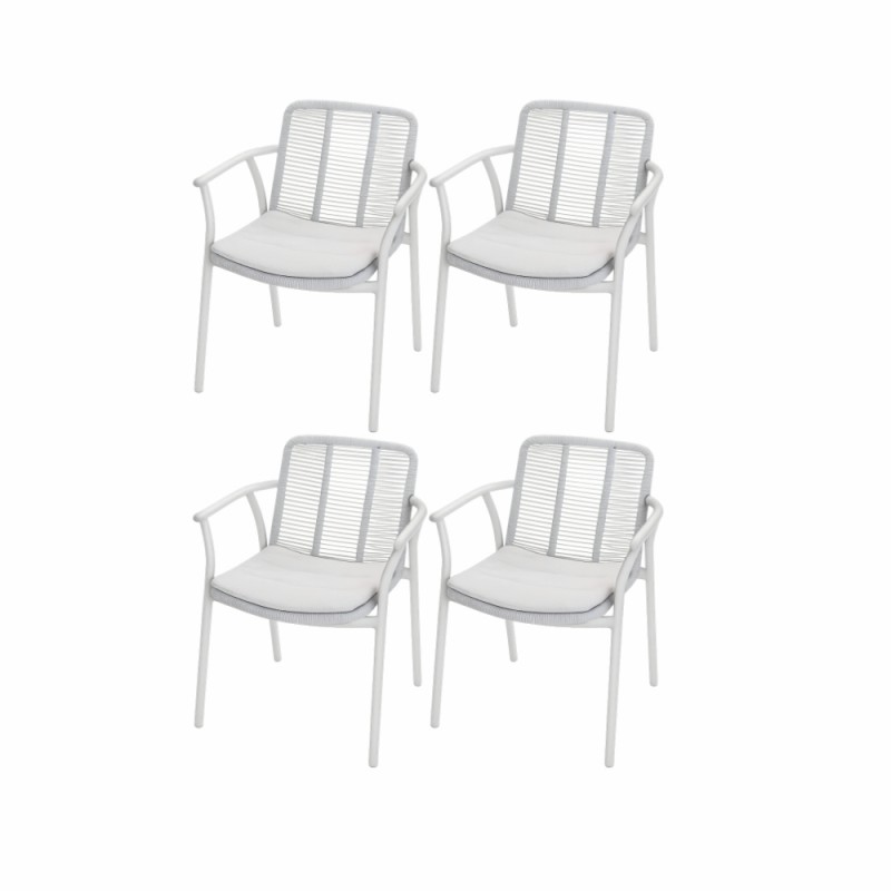 KLULK Set 4 Poltrone Nassau In Alluminio Verniciato A Polvere Crema Con Intreccio In Corde