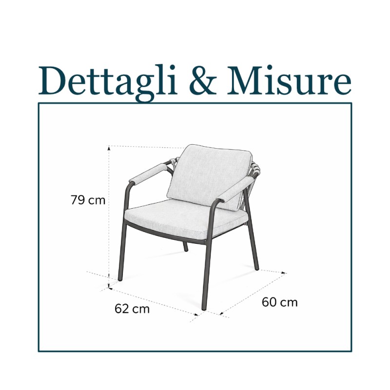 La versatilità è uno dei punti di forza della poltrona Nassau. Posizionala in giardino, terrazzo, portico o a bordo piscina e crea la tua oasi di relax personalizzata, da sola o in abbinamento a un tavolo per un set outdoor completo e funzionale. Arreda con stile il tuo spazio esterno e goditi appieno il comfort offerto da questa elegante poltrona. Grazie al suo design moderno e raffinato, Nassau si adatta perfettamente a qualsiasi ambiente, valorizzandolo con un tocco di classe e contemporaneità.
