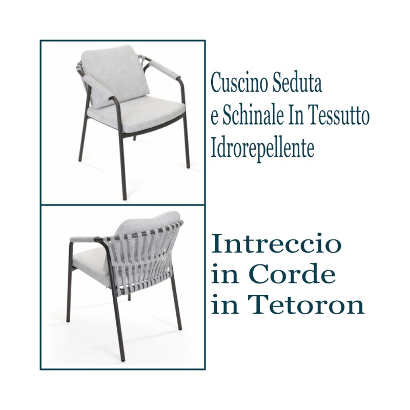 - KLULK Set 4 Poltrone Catalina In Alluminio Verniciato A Polvere Tortora con Cuscini Sfoderabili