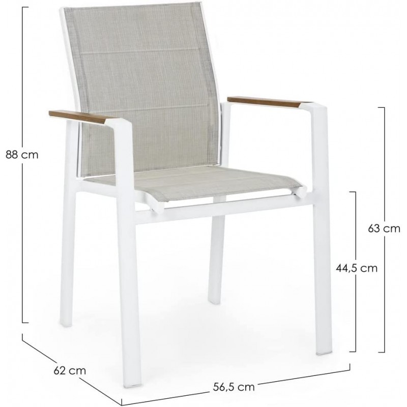 poltrona impilabile con braccioli struttura in alluminio verniciato bianco