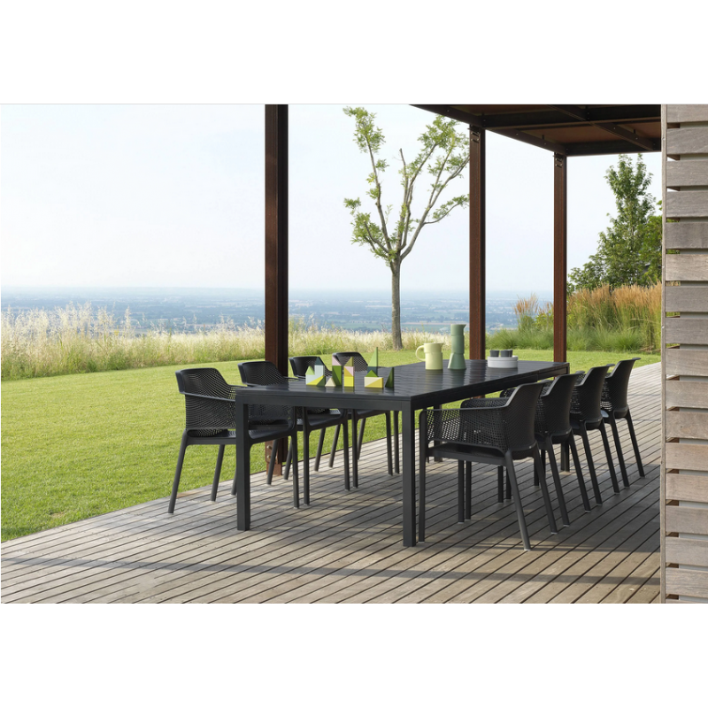 Il tavolo da giardino Rio è dotato di una pratica funzione estraibile. Il tavolo è allungato con un'estrazione frontale.