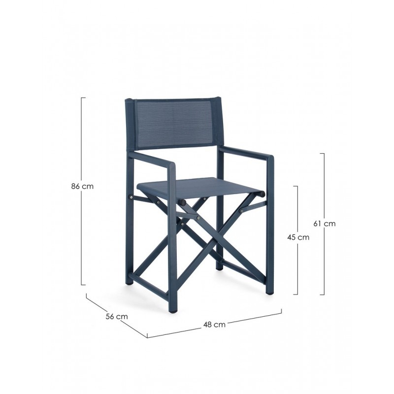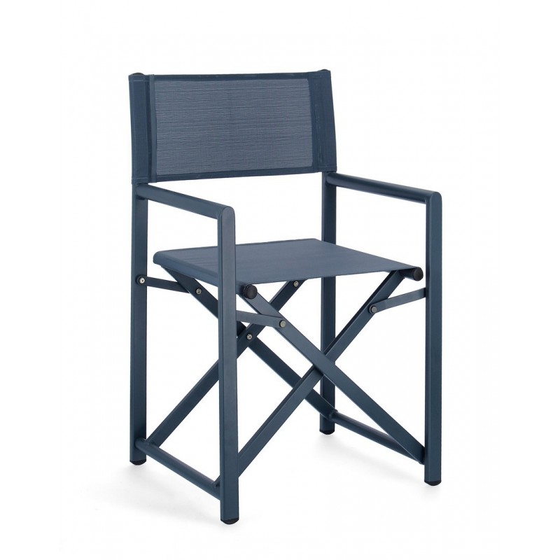 Sedia Registra Linea Taylor in Alluminio Verniciata Blu Navy, Seduta e Schienale Textilene Pieghevole.