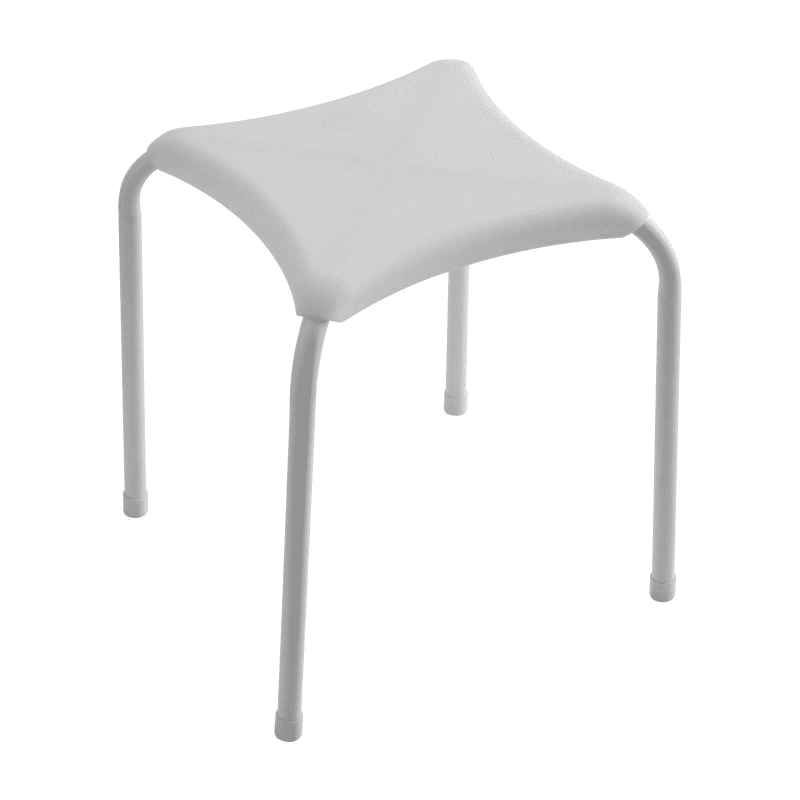Sgabello con seduta bianco in acciaio e abs. Lo sgabello è la soluzione pratica e maneggevole da avere sempre a portata di mano in bagno! E' un'ottima soluzione ai consueti problemi di spazio : ritorna utile quando hai bisogno di una seduta nel tuo bagno e non solo. Lavorato con materiali di facile pulizia ed ottima resistenza : struttura in metallo verniciato bianco e seduta in ABS sempre di colore bianco.