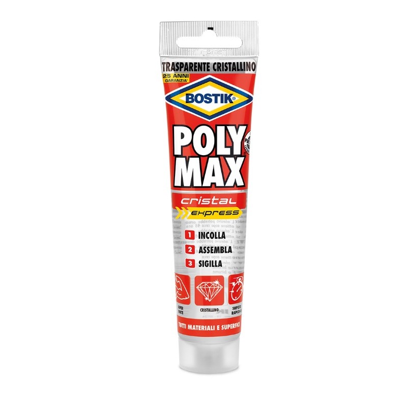 poly max cristal express è l'adesivo e sigillante universale con performance professionali per incollare, fissare e sigillare in maniera davvero invisibile quasi tutti i materiali, su quasi tutte le superfici.