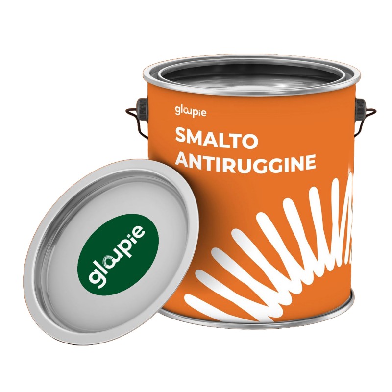 [Preparazione del supporto e modalita' d'applicazione]: Per una applicazione perfetta si consiglia caldamente di rimuovere la ruggine già esistente sulla superficie di utilizzo. Una volta che la ruggine è stata rimossa, è possibile applicare gloupie smalto antiruggine sintetico per proteggere il supporto dalla formazione di nuova ruggine. Lo smalto ha una resa di 10-11 mq/l. Applicabile con pennello, rullo e spruzzo