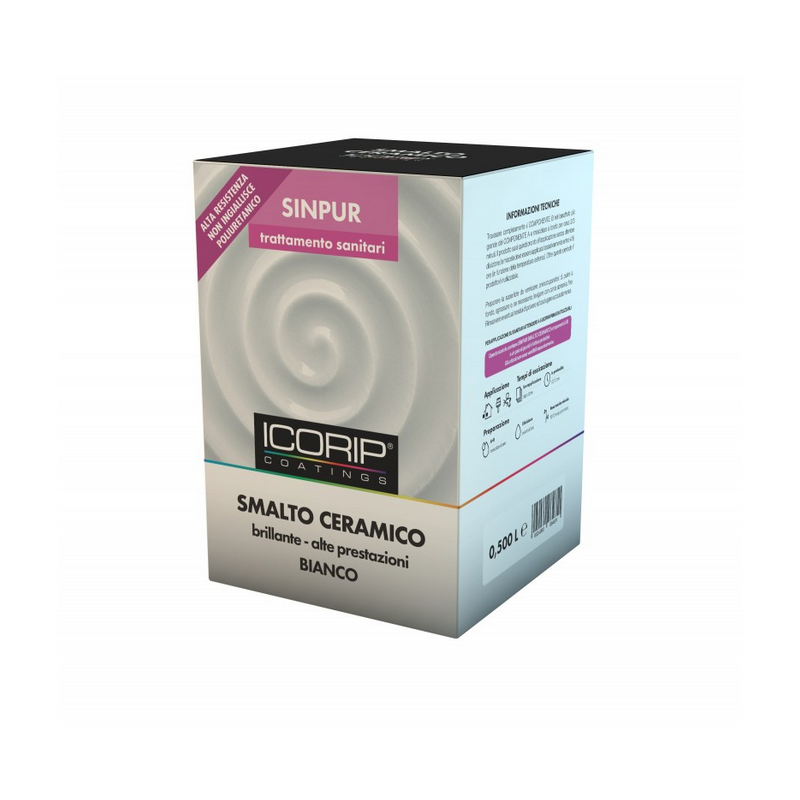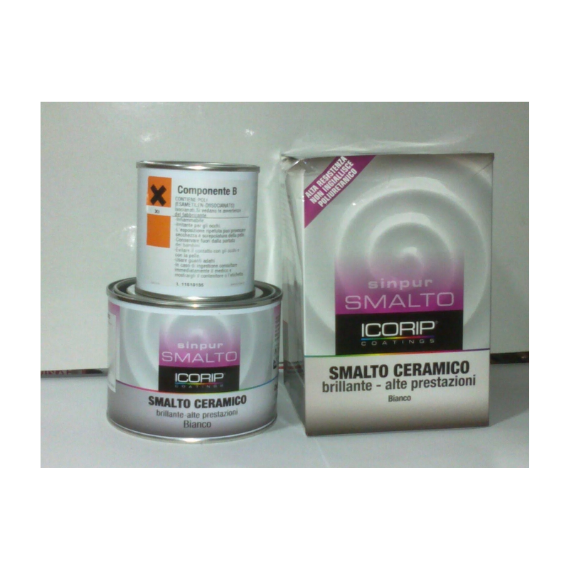 Smalto brillante, non ingiallente, resistente all'usura, specifico per la verniciatura di ceramica (vasche da bagno e sanitari); adatto anche per PVC, vetroresina, ferro, legno, ecc. Miscelare con cura i due componenti A (bianco) e B (incolore) prima dell'uso.