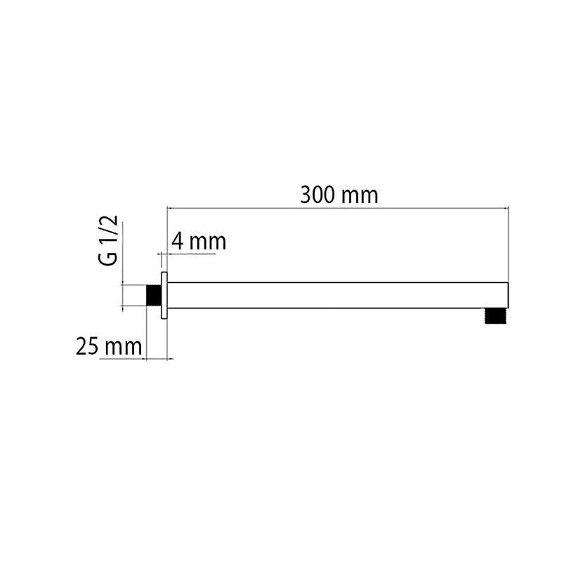 - Braccio doccia a parete in acciaio cromato 30 cm