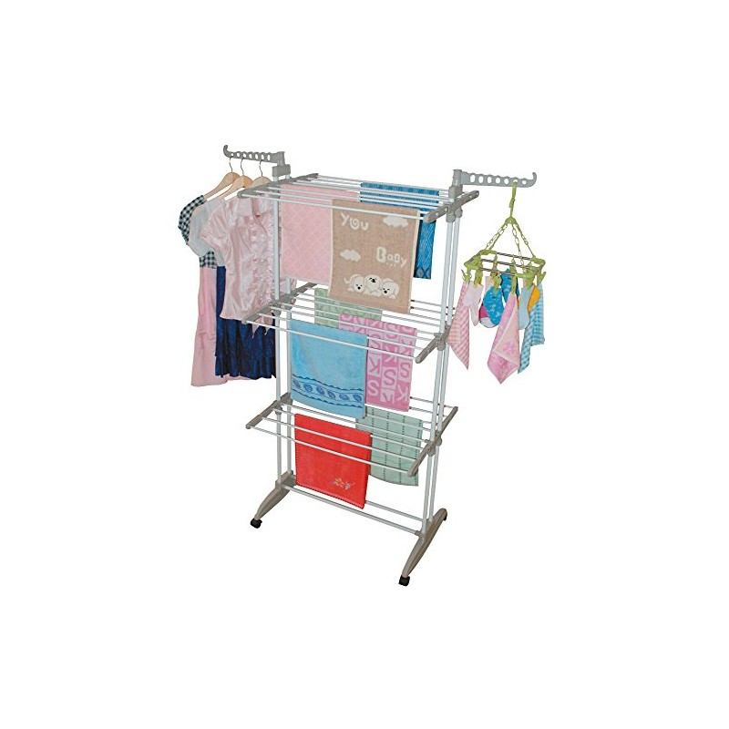 stendibiancheria Extra-large in formato XXL permette di stendere fino a 18 metri di bucato distribuendoli tutti in altezza. Realizzato in robusto acciaio è equipaggiato con rotelle per una facile movimentazione e particolari in ABS antiurto che lo rendono sicuro anche in presenza di bambini. Lo stendibiancheria a colonna XXL permette di sfrutta al massimo lo spazio ed è ideale per stendere il bucato anche in spazi angusti e ristretti. E' dotato di un mini-stendibiancheria dedicato alle mutandine, calzini, indumenti per bambini e neonati, salviettine che permette di avere sempre tutto in ordine e i panni pronti per la stiratura.