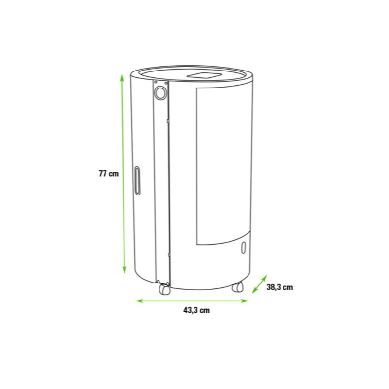Dimensioni stufa: Lunghezza 38,3 cm; Larghezza 43,3 cm; Altezza 77 cm