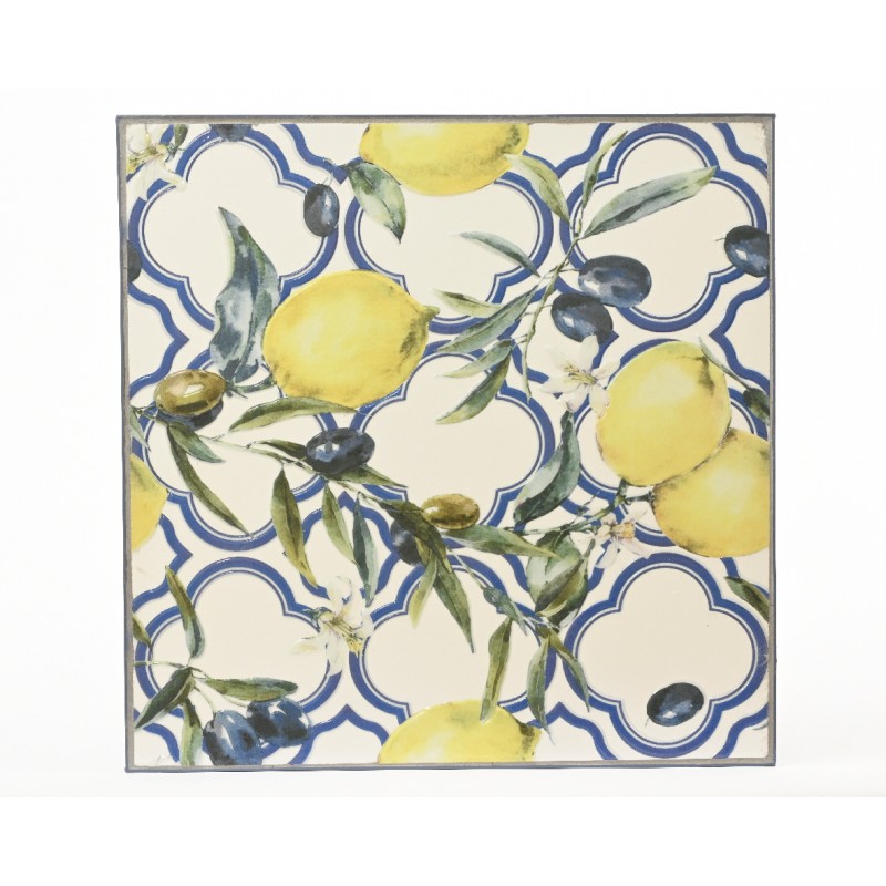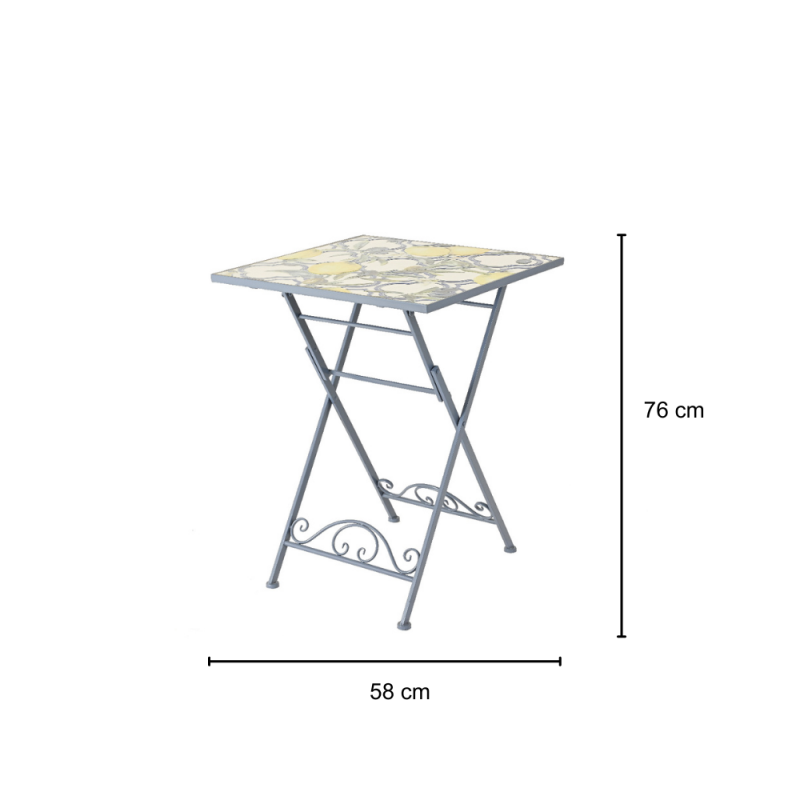 [Qualita' certificata]: Gloupie tavolo pieghevole da esterno per giardini, terrazze, patios, balconate in acciaio verniciato a polvere epossidica blu laguna con decorazioni a mosaico di agrumi linea positano, lunghezza 58 cm x larghezza 58 cm x altezza 76 cm, resistente ai raggi uv, portata massima di 40 kg