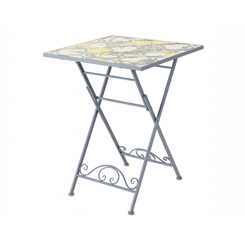 GLOUPIE Tavolo Pieghevole Da Esterno In Acciaio Verniciato A Polvere Blu Laguna Con Mosaico Di Agrumi Positano