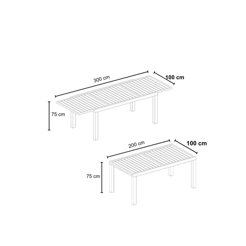 Gloupie tavolo allungabile da giardino per 10 persone Alamos con struttura in alluminio verniciato a polvere epossidica resistente ai raggi UV e alle intemperie, lunghezza variabile da 200 a 300 cm x profondità 100 cm x altezza 75 cm, dotato di prolunga estraibile con sistema a scomparsa e piano a doghe sempre in alluminio