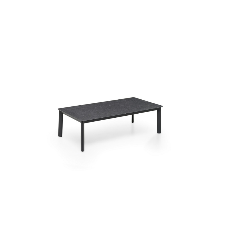 - KLULK Tavolino Da Esterno Martinica In Alluminio Verniciato Antracite Con Piano In Vetro Effetto Materico L 120 x P 65 x H 33 Cm