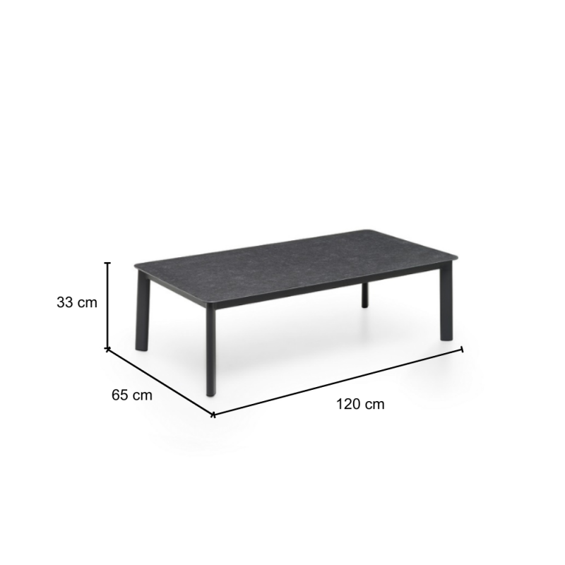 [QUALITA' CERTIFICATA]: KLULK Tavolino Da Esterno Martinica Con Struttura In Alluminio Verniciato A Polvere Di Poliestere Antracite Resistente Alle Intemperie, Ai Raggi UV, Ai Graffi Ed Agli Urti, Piano In Vetro Con Effetto Materico Di Pietra Naturale, Lunghezza 120 Cm X Profondità 65 Cm X Altezza 33 Cm, Perfetto Come Piano D'Appoggio Per La Propria Oggettistica Personale