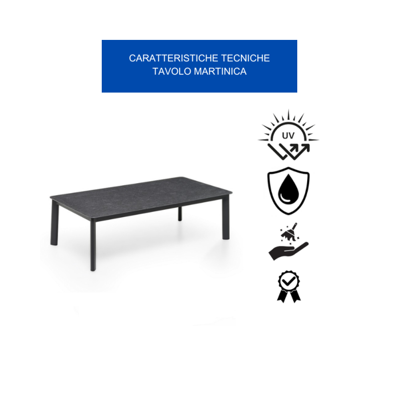 [DESIGN MODERNO E MINIMALISTA]: Martinica Non è Solo Robusto, Ma Anche Elegante. Le Sue Linee Pulite E Sinuose Si Adattano Perfettamente A Qualsiasi Stile Di Arredamento Esterno, Aggiungendo Un Tocco Di Classe E Modernità Al Tuo Spazio. Che Tu Preferisca Un Design Classico O Moderno, Questo Tavolino Saprà Inserirsi Con Armonia Nel Tuo Outdoor. Martinica è Disponibile In Due Colori, Antracite In Questo Caso O Bianco, Entrambi Super Raffinati E Dall'Eleganza Impeccabile