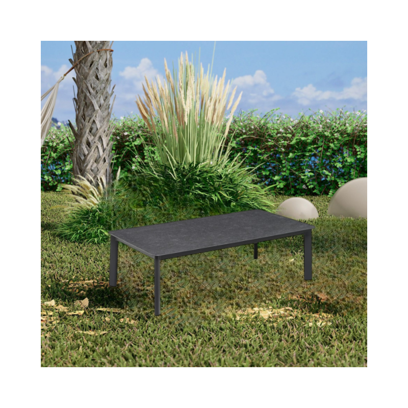 KLULK Tavolino Da Esterno Martinica In Alluminio Verniciato Antracite Con Piano In Vetro Effetto Materico L 120 x P 65 x H 33 Cm