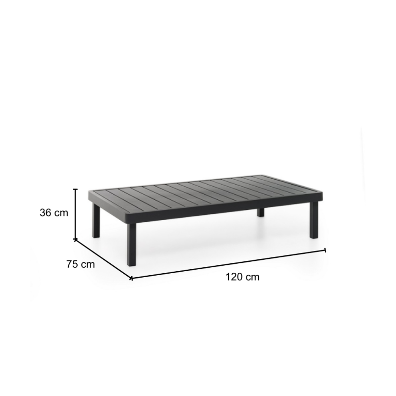KLULK Tavolino Da Esterno Barbados Con Struttura In Alluminio Verniciato A Polvere Antracite L 120 x P 75 x H 36 Cm