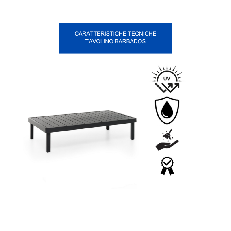 [DESIGN MODERNO E MINIMALISTA]: Barbados Non è Solo Robusto, Ma Anche Elegante. Le Sue Linee Pulite E Sinuose Si Adattano Perfettamente A Qualsiasi Stile Di Arredamento Esterno, Aggiungendo Un Tocco Di Classe E Modernità Al Tuo Spazio. Che Tu Preferisca Un Design Classico O Moderno, Questo Tavolino Saprà Inserirsi Con Armonia Nel Tuo Outdoor. Barbados è Disponibile In Due Colori, Antracite In Questo Caso O Bianco, Entrambi Super Raffinati E Dall'Eleganza Impeccabile
