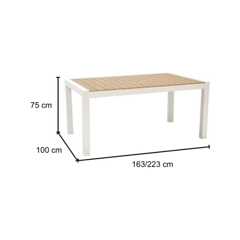 KLULK Tavolo Allungabile Da Giardino Cayman Con Struttura In Alluminio Verniciato A Polvere Epossidica Resistente Ai Raggi UV E Alle Intemperie, Lunghezza Variabile Da 163 A 223 Cm x Profondità 100 Cm x Altezza 75 Cm, Dotato Di Prolunga Estraibile Con Sistema A Scorrimento, Piano A Doghe In Polywood Dalla Colorazione Teak Da 95 Mm E Gambe Con Piedino Regolabile In Altezza