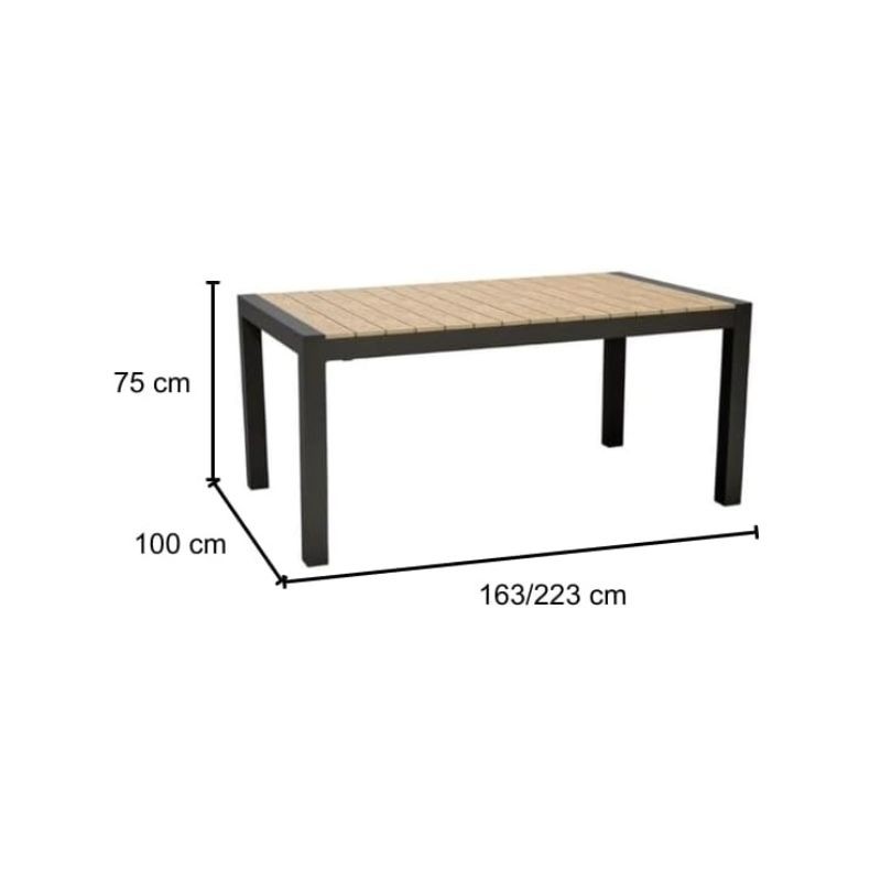 KLULK Tavolo Allungabile Da Giardino Cayman Con Struttura In Alluminio Verniciato A Polvere Epossidica Resistente Ai Raggi UV E Alle Intemperie, Lunghezza Variabile Da 163 A 223 Cm x Profondità 100 Cm x Altezza 75 Cm, Dotato Di Prolunga Estraibile Con Sistema A Scorrimento, Piano A Doghe In Polywood Dalla Colorazione Teak Da 95 Mm E Gambe Con Piedino Regolabile In Altezza