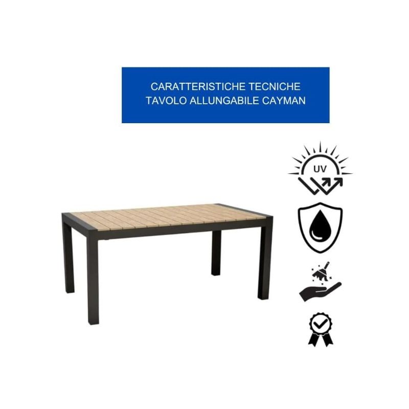 Il Tavolo Non Solo è Pratico E Funzionale, Ma è Anche Un Complemento D'Arredo Dal Design Moderno Ed Elegante Che Impreziosisce Qualsiasi Spazio Esterno. Il Piano A Doghe Da 95 Mm In Polywood Conferisce Un Tocco Di Stile, Rendendo Il Tuo Giardino O Terrazzo Un Ambiente Accogliente. La Prolunga Estraibile Con Meccanismo Perimetrale è La Soluzione Ideale Per Avere Sempre A Disposizione Lo Spazio Necessario Quando Hai Ospiti, Ma Allo Stesso Tempo Riduce L'Ingombro Quando Non Serve