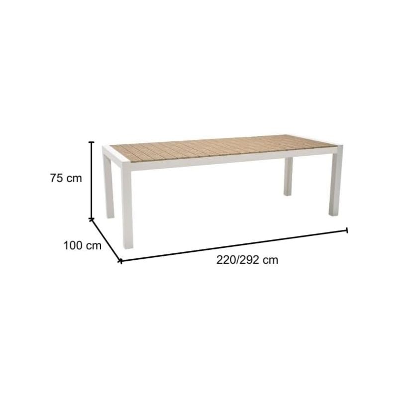 KLULK Tavolo Allungabile Da Giardino Cayman Con Struttura In Alluminio Verniciato A Polvere Epossidica Resistente Ai Raggi UV E Alle Intemperie, Lunghezza Variabile Da 220 A 292 Cm x Profondità 100 Cm x Altezza 75 Cm, Dotato Di Prolunga Estraibile Con Sistema A Scorrimento E Piano A Doghe In Polywood Dalla Colorazione Teak