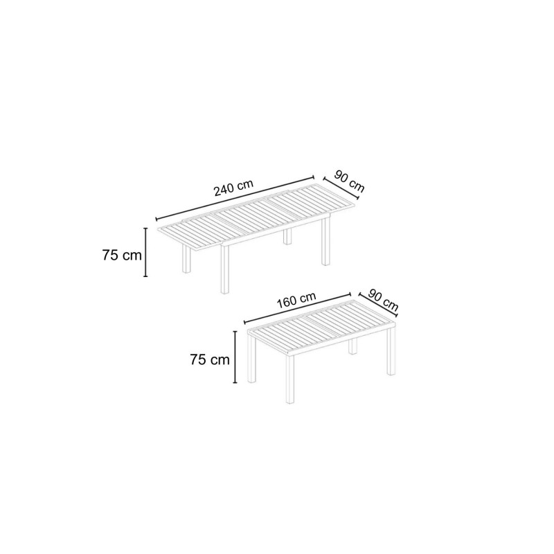 Gloupie tavolo allungabile da giardino per 8 persone Alamos con struttura in alluminio verniciato a polvere epossidica resistente ai raggi UV e alle intemperie, lunghezza variabile da 160 a 240 cm x profondità 90 cm x altezza 75 cm, dotato di prolunga estraibile con sistema a scomparsa e piano a doghe sempre in alluminio