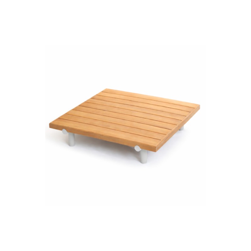 - KLULK Tavolino da Esterno Bali in Alluminio e Legno, Resistente a Intemperie e Raggi UV, Piano in Doghe, 95x95x22 cm