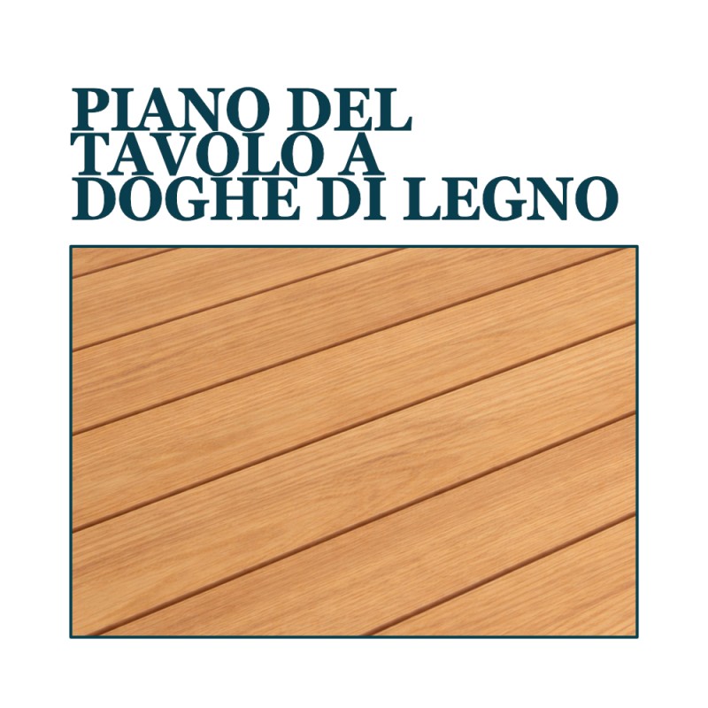 [RESISTENZA IMBATTIBILE PER UN ARREDO DURATURO]: Struttura solida e resistente progettata per garantire stabilità e comfort nel tempo. Il piano in doghe di legno offre una superficie robusta, elegante e facile da pulire, ideale per l’uso quotidiano all’aperto. Grazie alla qualità dei materiali e alla costruzione pensata per resistere agli agenti atmosferici, assicura un’esperienza di relax affidabile e duratura.