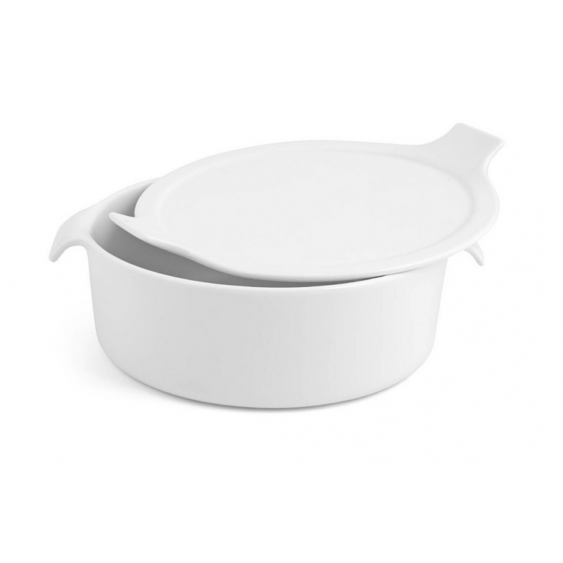 Pirofila rettangolare porcellana 20x7cm design svedese per la pirofila con coperchio che diventa vassoio per servire in tavola le pietanze direttamente dal forno tradizionale o dal microonde.