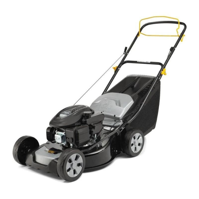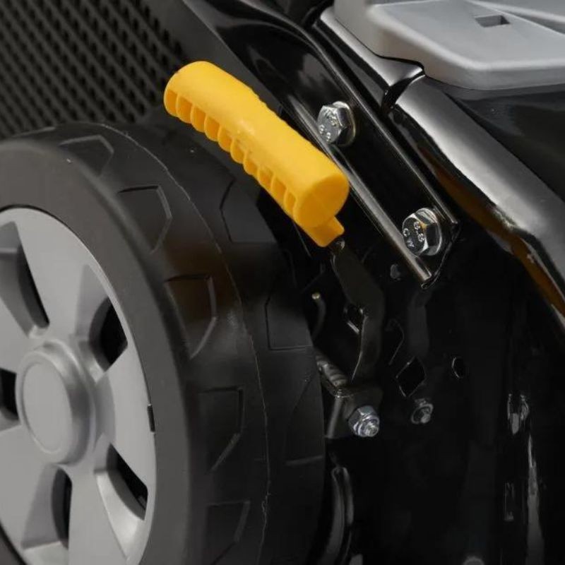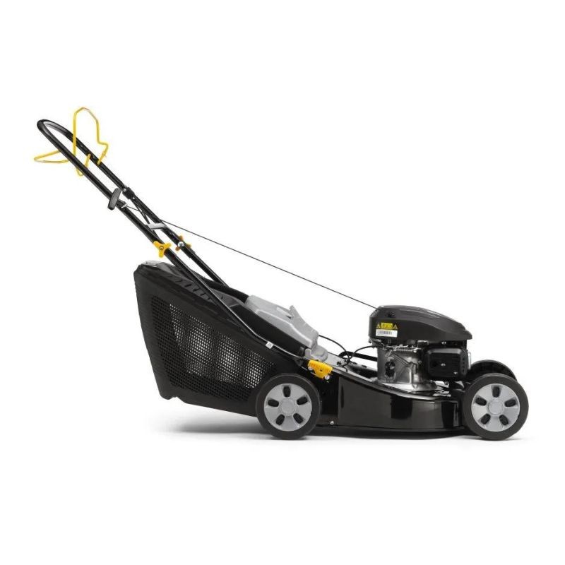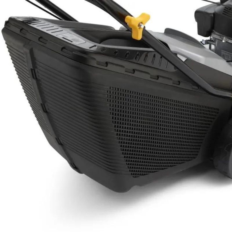 - Tagliaerba a trazione con motore a scoppio da 125 cc, larghezza di taglio da 46 cm e sacco di raccolta da 60 L