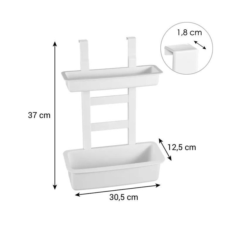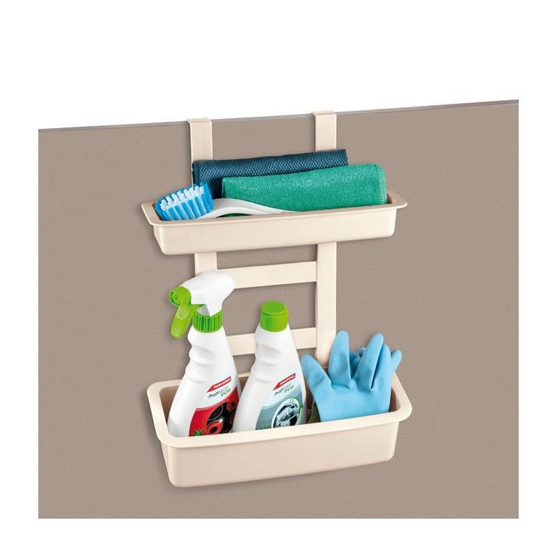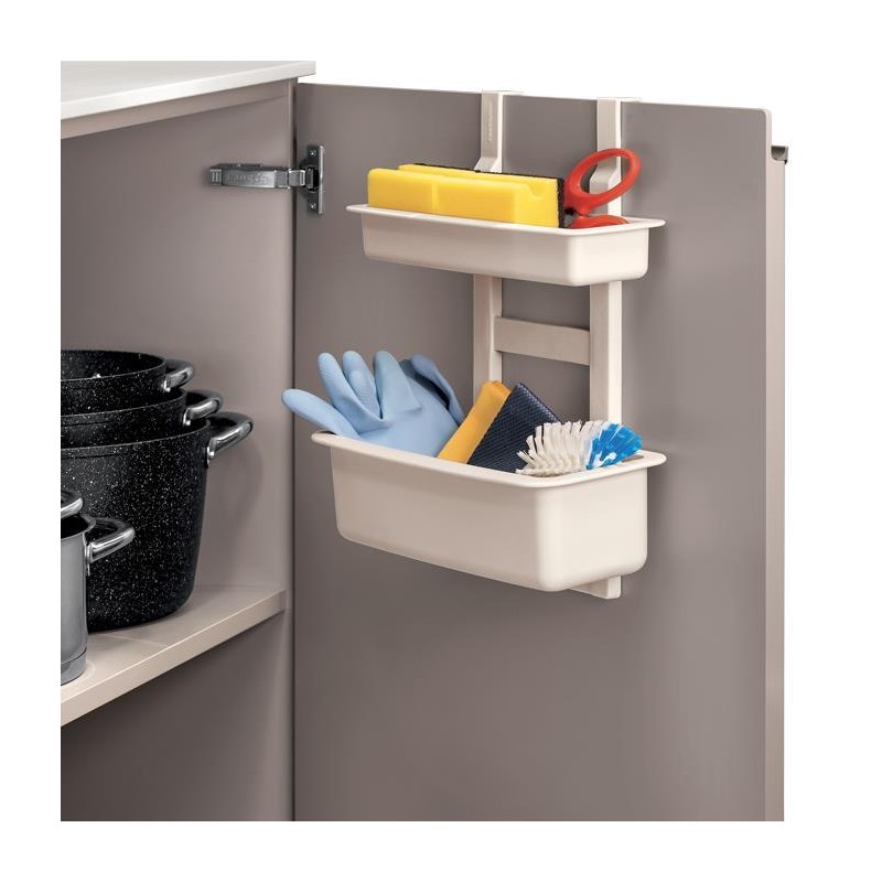 Per sfruttare al meglio gli spazi inutilizzati all’interno o all’esterno delle ante dei pensili in cucina, prova il portaoggetti per ante: ha dei ganci che permettono di appenderlo sia all’interno, si all’esterno delle ante di spessore comune, e ha due portaoggetti in cui inserire spugne, accessori per la pulizia o piccoli oggetti che altrimenti ingombrerebbero il piano di lavoro. Per una perfetta organizzazione della cucina! Il portaoggetti è prodotto in plastica e permette di regolare la posizione delle mensole a seconda delle tue esigenze.