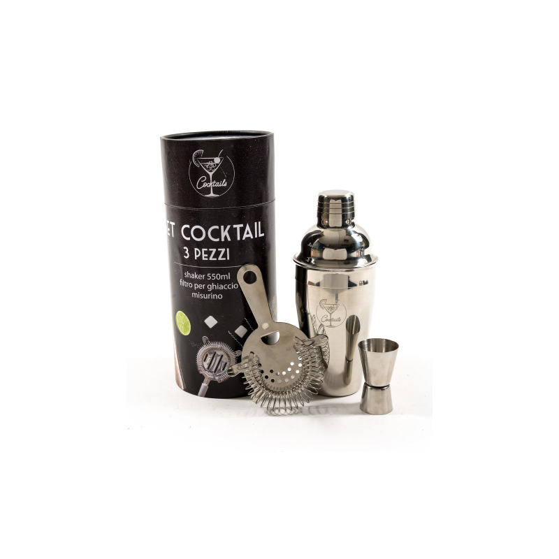 - Set Cocktail 3 Pezzi Con Shaker 550 ml, Filtro Per Ghiaccio e Misurino