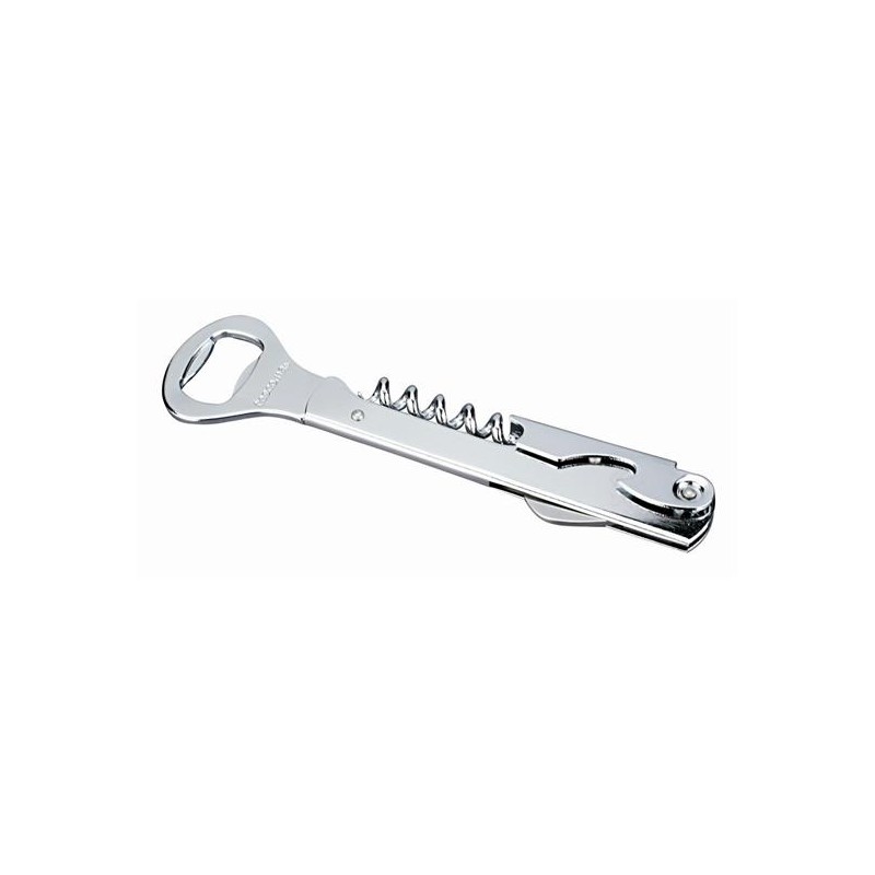 prodotto in acciaio inox, è adatto per aprire ogni tipo di bottiglia con tappo di sughero o a corona; è anche provvisto di un coltellino per incidere e rimuovere facilmente la capsula dal tappo in sughero. piegato, occupa davvero poco spazio: da tenere in tasca per un picnic!