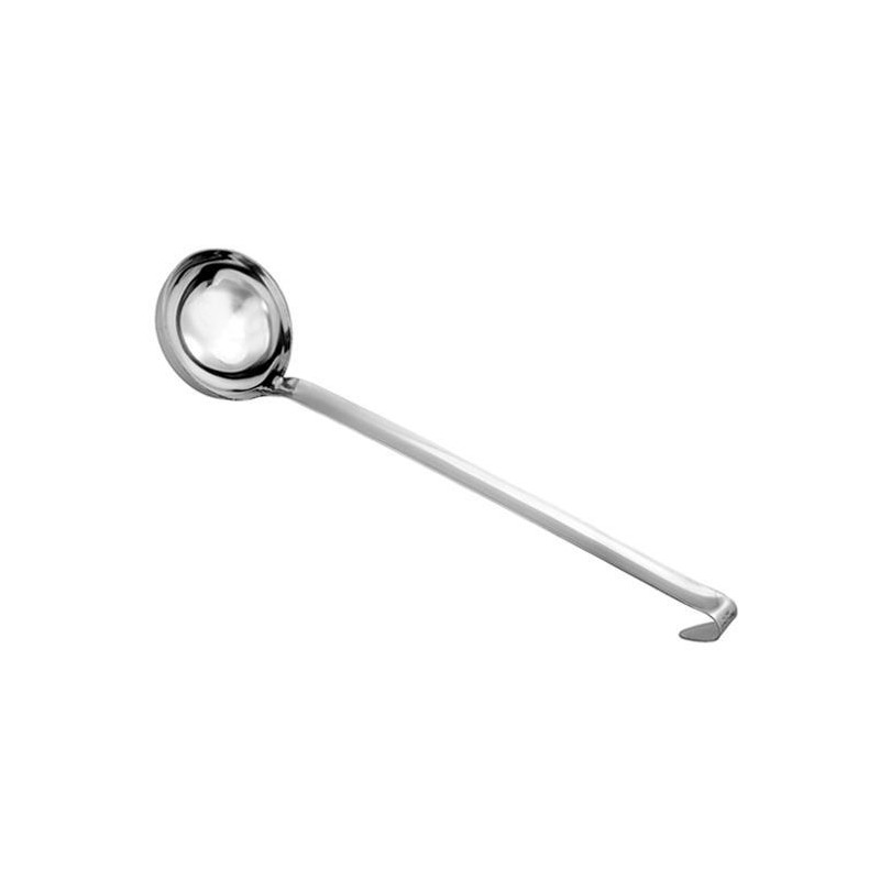 il classico mestolo da zuppiera, in acciaio inossidabile, lo trovi in cinque misure, con diametro da 6 a 10 cm. perfetto per l'uso quotidiano, ha un design è essenziale e professionale, grazie alla forma del manico può comodamente essere appeso alla barra portautensili.