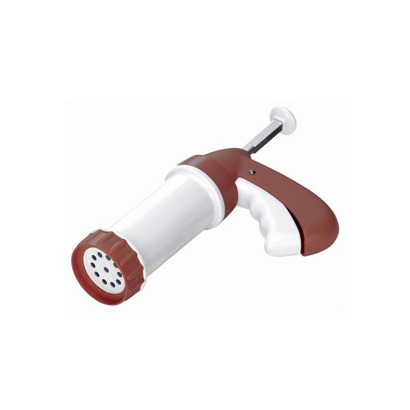 Hai ben 10 diverse trafile per ottenere frolle di qualsiasi forma. Si trasforma anche in una pistola decoratrice, che sostituisce il sac à poche, in quanto possiede 6 beccucci diversi, utili per decorare torte e dolcetti.