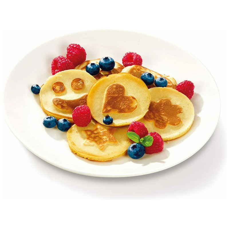 Ha in dotazione 4 dischi per decorare i pancake con la forma di un cuore, una stella, un fiore o uno smiley.