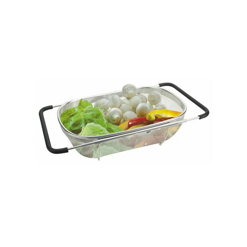 Colatutto estensibile a rete di filo in acciaio inox, può essere utilizzato come cestello lava frutta e verdura o come scolapasta.