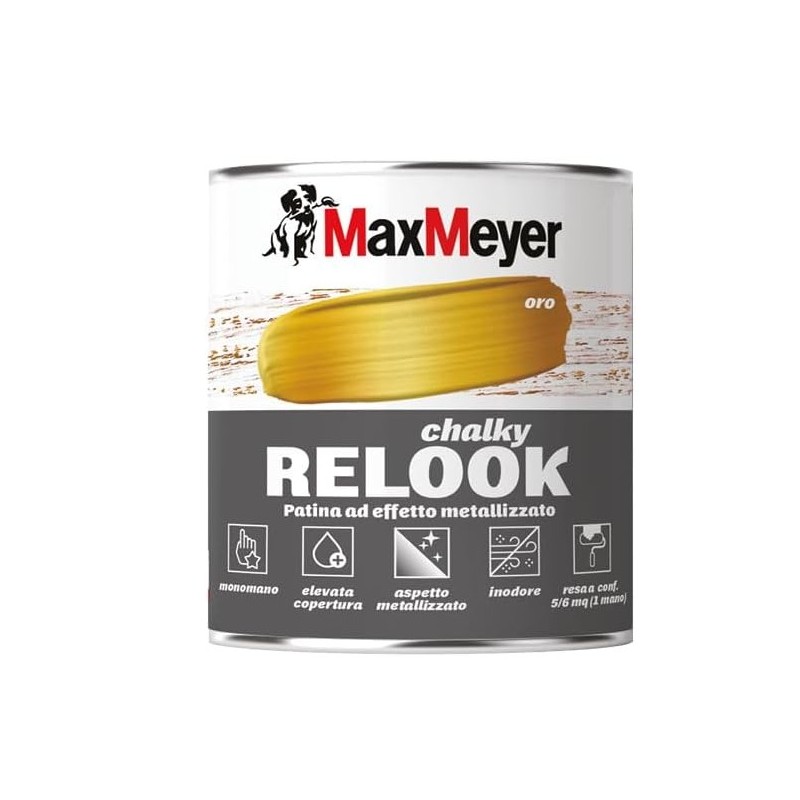 Chalky Relook Oro è una vernice all’acqua inodore con elegante effetto metallizzato, perfetta per rinnovare mobili e complementi d’arredo da interno. Facile da applicare grazie alla sua formulazione monocomponente, garantisce un’alta copertura e un risultato di grande impatto visivo. Priva di formaldeide e classificata A+ per la qualità dell’aria, è ideale per ambienti domestici.