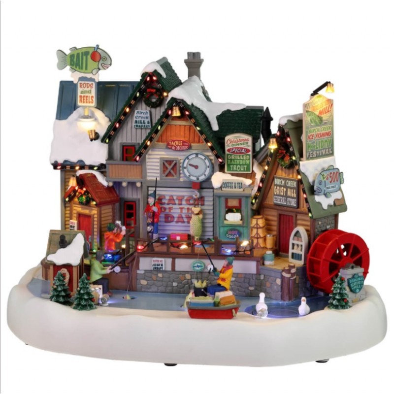 È di nuovo quel periodo dell'anno ed è in corso il Birch Creek Ice Fishing Festival. I pescatori e le pescatrici sono infagottati e pronti con le loro canne a sbarcare il pescato più grosso della giornata. Il Tackle Shop è illuminato a festa per l'occasione, rendendo questo evento annuale uno dei preferiti in città sia dai partecipanti che dagli spettatori. Dimensioni (A x L x P): 22,5 x 30 x 23,5 cm