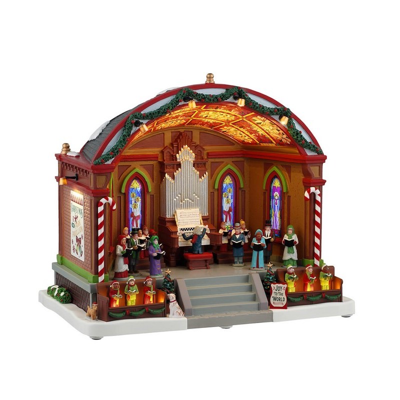 Description: Stop by the Park Pavilion to experience the wonderful Christmas magic where joy and merriment abound. In this scene, you can see a musician playing the captivating organ accompanied by a lively choir, while two intrigued dogs stand by and listen to the festive sounds. It truly captures the essence of the festive season and brings rejoicing to everyone who passes by.