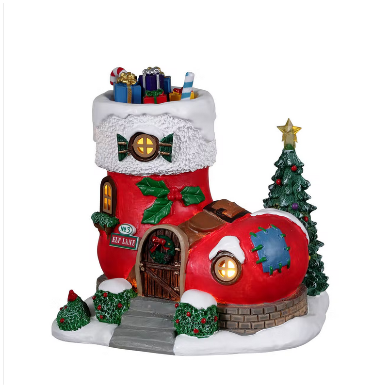 Per coloro che si sono mai chiesti come potrebbe essere vivere in una calza di Natale, non chiedersi più! Chi non vorrebbe vivere in una casa che ha una scorta di regali incartati sul tetto? Il design insolito di No. 3 Elf Lane avrà un grande impatto sulla configurazione del tuo Paese delle Meraviglie di Babbo Natale. Assicurati di prenotarlo per uno dei tuoi elfi preferiti!