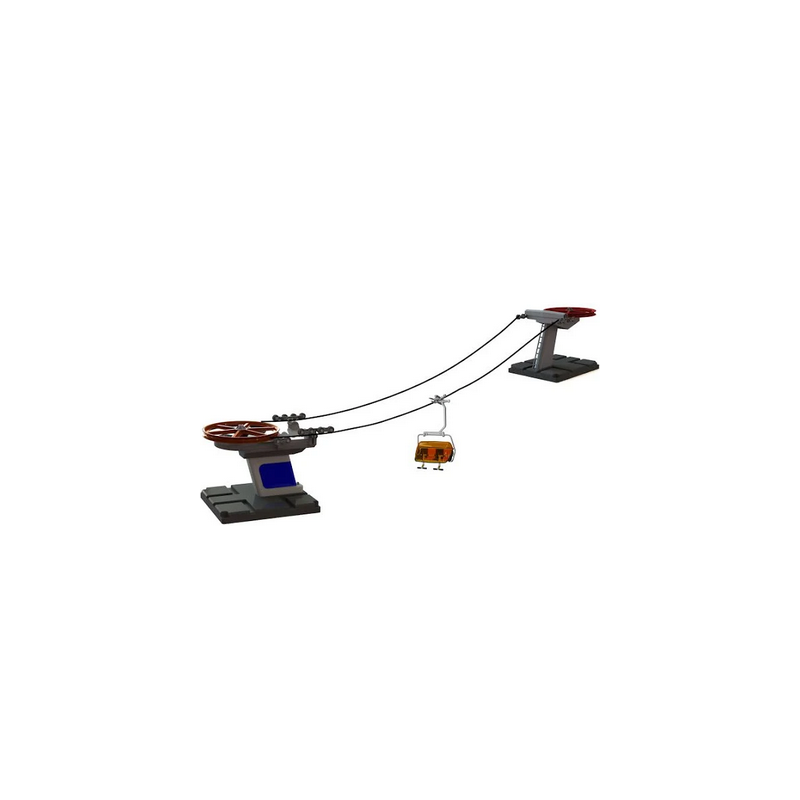 Lo skilift elettrico è composto da una stazione motore, un giro motore di colore rosso, un cavo lungo da 8 m, un cavo connettore e una seggiola da quattro posto di colore arancione.